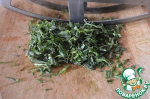 2. Листья эстрагона мелко порубить. Оставить несколько веточек, чтобы положить поверх грудок.