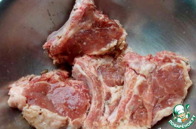 Рецепт «Свинина на кости с пьяным изюмом и шалфеем»: