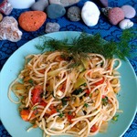 Облегченно-упрощенный вариант популярного итальянского блюда. Настоящие спагетти алла дьявола я тоже иногда готовлю и как-нибудь непременно выложу:) ну а это - просто, быстро и вкусно, отличный ужин на скорую руку. Угощайтесь! Рецепт взят из книги "Итальянская кухня" Л. Коцци и О. Шмелевой.