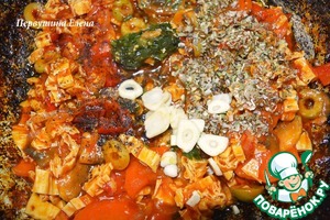 Добавить орегано, тушить еще 1 минуту и выключить огонь.