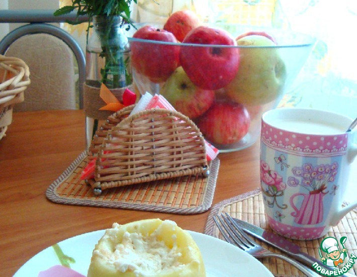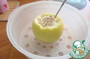 Рецепт «Яблоко печёное в СВЧ с творогом и овсянкой»: