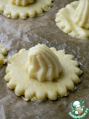 С помощью кондитерского мешка отсадить заварное тесто в центр песочного.