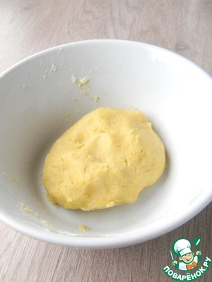 Муку с разрыхлителем просеять. Добавить желток, масло и сахарную пудру. Замесить мягкое тесто. Накрыть и убрать в сторонку.