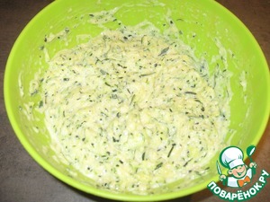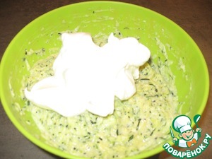 Кабачки натереть на терке, посолить и оставить минут на 20, что-бы они выделили максимум жидкости.