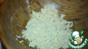 Муку, порезаное кусочками масло и сахарную пудру перетереть руками в крошку