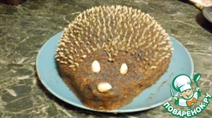 С орешков сделать глазки и носик. У "тельце" острячком вверх воткнуть "иголки" - очищенные семечки. Поставить "ежика" в холодильник на 12 часов
