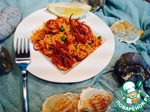 Тем Поварятам, кто этим летом не смог насладиться отдыхом на морском побережье, предлагаю немного по фантазировать и прогуляться по солнечному средиземноморскому пляжу. Заглянуть в ресторан с видом на море и отведать популярное блюдо arroz con calamar (рис с кальмаром). Получается очень простое в приготовлении блюдо и очень изысканный вкус. Главное правильно подобрать рис, чтобы сильно не разварился и впитал в себя весь аромат тушеного кальмара.