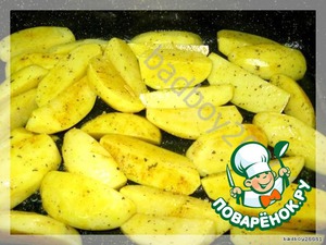 Картофель режем кусочками, посыпаем немного специями и солью.
