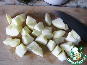 Очистите от кожуры и нарежьте яблоко. Добавить его к молоку. Насыпьте туда же овсяные хлопья. Будьте внимательны, некоторые хлопья не требуют длительного замачивания, но Геркулес надо выдержать в молоке минимум 10 минут, а лучше около получаса.