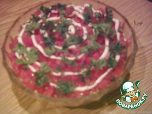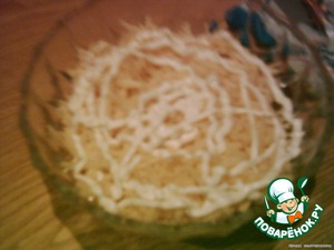 Сверху на сыр выкладываем рубленые яйца и полить майонезом.