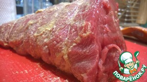 Пришлось научиться готовить это необычайно вкусное блюдо, когда решил приготовить прессаты (смотрите мой рецепт "Прессаты"). Приготовленное таким образом мясо получается розовым и очень сочным. Рекомендую гурманам!
