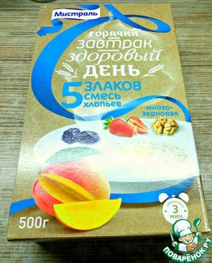 - Хлопья злаковые ("5 злаков" от ТМ "Мистраль") — 2 ст. л.
