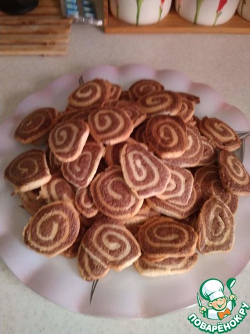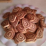 Охлажденный рулет нарезать ровными токими кружочками, выложить на противень и выпекать при температуре 180-200 *С.