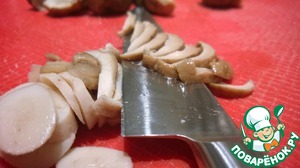 Добавляем грибы и выдавливаем сок 1 лимона.