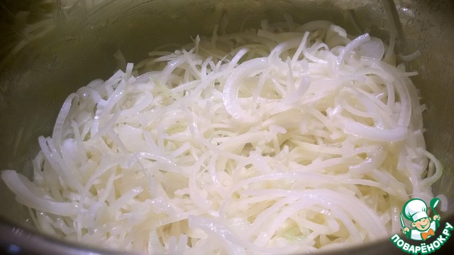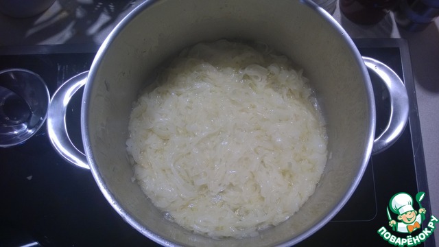 Обжариваем лук на слабом огне, пока он не начнет становиться золотистым.