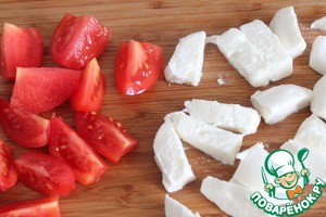 Обжариваем до готовности. Выкладываем на тарелку баклажаны, помидоры и моцареллу. По желанию сбрызгиваем лимонным соком.