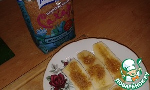 Банан разрезать вдоль, посыпать тростниковым сахаром