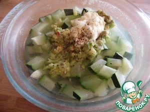 Кабачок нарезать небольшими кубиками, авокадо очистить, размять вилкой.