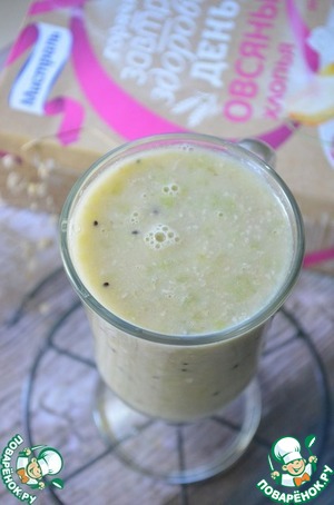 В чашу блендера положить подготовленные киви, овсяные хлопья, мед по вкусу и влить еще 100 мл зеленого чая. Ингредиенты взбить.