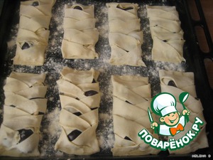 Посыпаем мукой противень и выкладываем наши плетёночки, смазываем оставшемся белком.