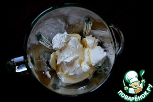 Для начала сделаем мороженое. Для этого творог (без крупинок) выложим в чашу блендера, туда же отправим колечки банана и сливки (жирные). Сахарную пудру можно добавить по вкусу, можно обойтись без нее. Взбиваем