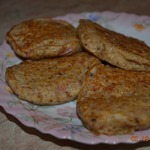 Руками смоченными водой, сформировать лепешки и обжарить оладушки с двух сторон до золотистого цвета. Подавать со сметаной. Приятного аппетита!
