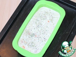 Выложить смесь в форму для кекса, посыпать приправой для овощей и запекать в разогретой до 200 градусов духовке минут 40-45. Проверяйте на сухую спичку.