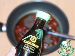 В чесночном масле обжариваем 1 ст. л. томатной пасты, вливаем 1-2 ст. л. соевого соуса,