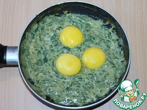 Остудить зеленую массу и добавить 3 желтка, перемешать.