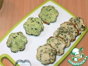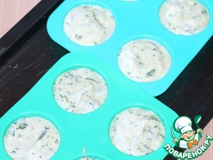 Прямоугольный противень застелить пекарской бумагой и равномерным слоем выложить шпинатную массу. Можно разложить массу в порционные формочки. Выпекать при температуре 200 град. приблизительно 20 минут.