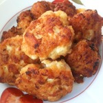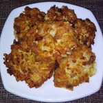 На сковороду наливаем растительное масло, кладём ложкой "котлетки" и обжариваем до румяности на большом огне с обеих сторон.