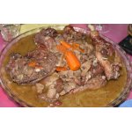 Куски петуха вынуть и положить на блюдо с высокими бортиками, а в оставшийся соус добавить масляно - мучную смесь, приготовленную отдельно в маленькой сковороде на небольшом огне, при постоянном помешивании.