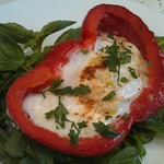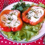 Жанночка, крышкой не накрывала, за 2 мин. было готово, причем желток стал плотным, если любишь жидкий, то времени надо меньше! И желательно подсолить сам перец, перед тем, как вливать яйцо. Я думаю, что все у тебя получится!
