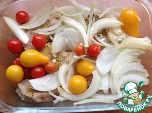 Ингредиенты для «Свинина с луком и черри в СВЧ»: