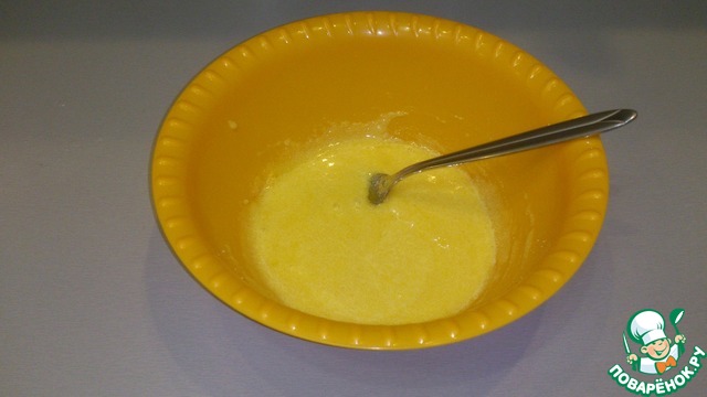 2. Растопить на слабом огне пачку сливочного масла и добавить к массе с желтками и сахаром. Можно масла взять поменьше - грамм 120-150.