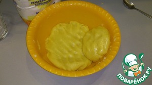 3. Добавьте 1 ч. л. разрыхлителя, пакетик ванилина, перемешайте, и добавьте муку. Тесто должно получиться как на пельмени. Но будет немного крошиться.
