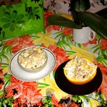 Салатик очень сытный, я часто его делаю, а сегодня особый случай - день рождения сестры. Теперь о главном, о салате.Итак, сначала варим рис и курицу, если у вас есть готовый окорочок, то тоже пойдет, но лучше с отварной курочкой или же отварить готовое филе курицы так, как нам нужна филейная часть. Когда рис и курица приготовились, ждем, когда остынут и приступаем к апельсинам.