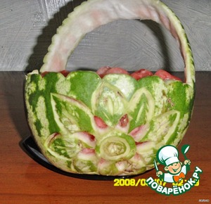 Ложкой нуазетка вырезается мякоть, в конце украшения "засыпаем" обратно в "корзину".