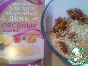 К измельченной массе добавить овсяные хлопья с отрубями ТМ "Мистраль"и все хорошо перемешиваем.