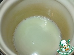 В небольшую кастрюльку влить молоко, добавить сахар, довести до кипения.