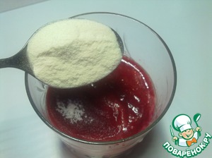 В вишневый сок добавляем агар-агар и оставляем на полчаса.