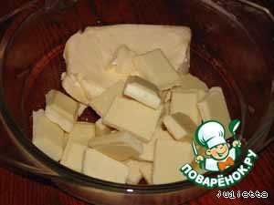 Приготовить белую шоколадную глазурь, растопив в водяной бане или свч-печи (а я вообще поставила в духовку на 150С) белый шоколад и сливочное масло.