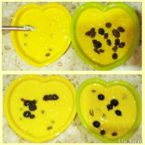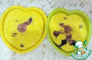 В основу добавляем изюм, ягоды, выкладываем в формочки