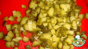 Добавьте измельченные огурцы.