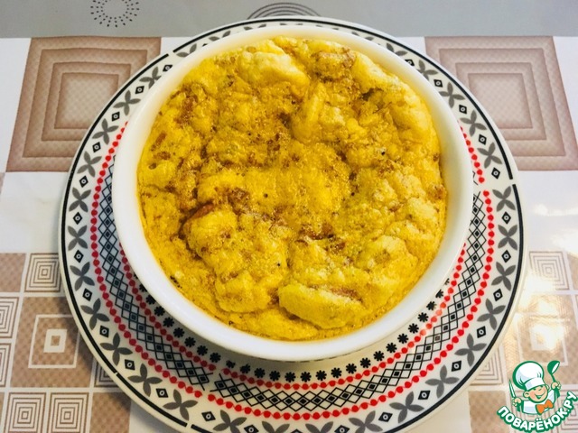 Формочки смазать сливочным маслом и наполнить воздушной яблочно-яичной массой. Наполняйте до самого верха, во время выпечки тесто поднимется, но затем снова примет свою форму. Запекать в духовке при 180С 15 минут до зарумянивания.