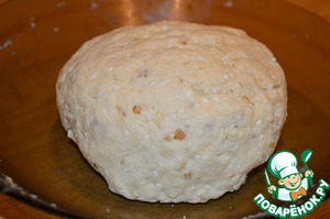 Тесто скатать в шар, завернуть в полиэтилен и убрать в холодильник на 1 час.