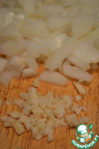 Лук и чеснок очистить и нарезать кубиком.