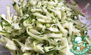 Салат прост... Как.., проще не бывает. На тёрке нужно натереть цуккини. Отжать лишнюю воду.