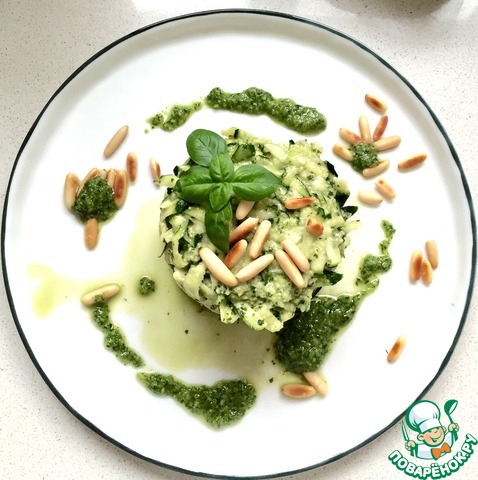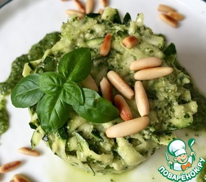 Ещё раз отжать цуккини. Заправить песто. Все перемешать и убрать в холодильник на 30 мин. Достать и сервировать так, как подскажет фантазия.