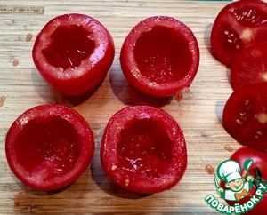Помидоры помойте! Аккуратно срежьте крышечку.